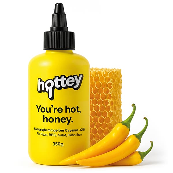 Hot Honey aus Blütenhonig & gelber Cayenne-Chili. Süß-scharfer Kick für Pizza, BBQ & Salat.