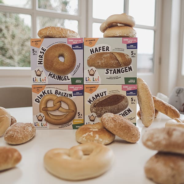 Salzfreie Backwaren ab 6 Monaten, fertig gebacken, tiefgekühlt und in Minuten servierfertig.