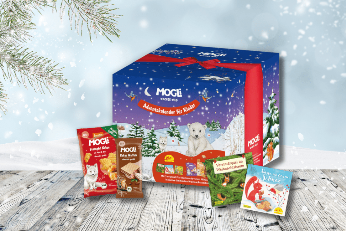 Der MOGLi x Pixi Adventskalender enthält Bio- und Demeter-Snacks sowie drei Pixi-Bücher voller Naturabenteuer. Die Würfelform ist mit freundlichen Eisbären-Motiven gestaltet und macht den Kalender zu einem dekorativen Element in der Adventszeit. Der Kalender kostet 27,99 Euro, inklusive MwSt., zuzüglich Versandkosten (kostenfreier Versand ab 49 Euro). Emanuel Schmock gründete MOGLi 2012 mit dem Ziel, Kindern natürliche und gesundheitsbewusste Snacks anzubieten. Der Kalender bietet eine Kombination aus Knabberspaß und Vorlesezauber und ist für Familien geeignet, die Wert auf gesunde Ernährung und kindgerechte Unterhaltung legen.