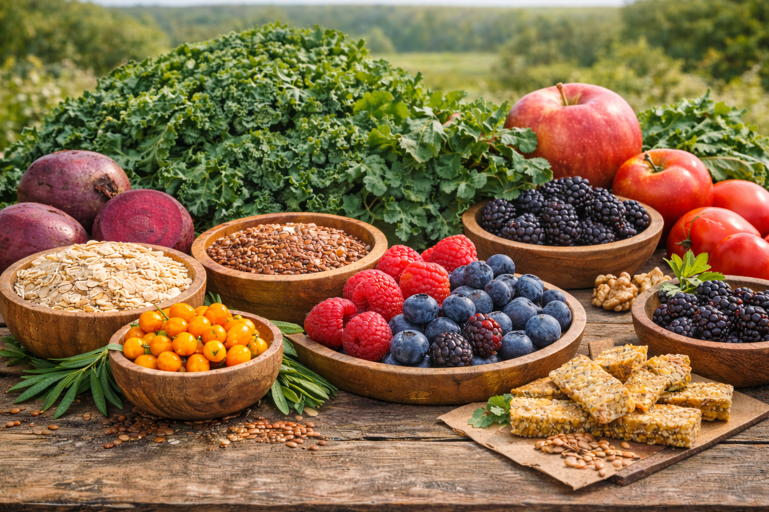 In vielen Regionen Europas, besonders im deutschsprachigen Raum, gibt es viele Lebensmittel, die besonders viele wichtige Nährstoffe enthalten. Ein gutes Beispiel ist Sanddorn: Er hat sehr viel Vitamin C und enthält außerdem Vitamin E, Beta-Carotin und gesunde ungesättigte Fettsäuren. Beeren wie Heidelbeeren, Johannisbeeren und Brombeeren enthalten viele Antioxidantien und sekundäre Pflanzenstoffe, die den Körper schützen können. Grünkohl ist ein typisches Wintergemüse und zählt zu den nährstoffreichsten Gemüsesorten. Er enthält unter anderem Vitamin K, Vitamin C sowie Mineralstoffe wie Eisen und Calcium. Rote Bete liefert wichtige Nährstoffe wie Folsäure und Kalium und enthält außerdem natürliche Nitrate. Auch Samen und Nüsse gehören dazu: Leinsamen liefern Omega-3-Fettsäuren, Ballaststoffe und pflanzliches Eiweiß. Hafer enthält komplexe Kohlenhydrate und Beta-Glucane, die sich positiv auf die Verdauung auswirken können, sowie Mineralstoffe wie Magnesium und Zink.