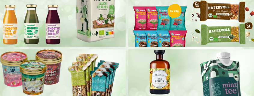 Bildmaterial: baelanse, Ciao Coffee, Dr. Jaglas, Hafervoll, Holiroots, Just Nosh, Kraftling, Kraftschluck, Little Lunch, AIS und Ocha Ocha