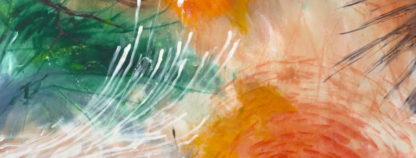 Schließlich entschied er sich für Gemälde, bei dessen Umsetzung ihn MushRoots weitgehend freie Hand ließ. Die einzige Bitte war, die Markenfarben Orange und Grün zu verwenden. Deshalb ist das Bild überraschend farbenfroh geraten. Überraschend auch deshalb, weil viele bei Pilzen wohl eher an erdige, düstere Farben denken würden. Leon konterkariert gern gängige Erwartungen und fertigt auch schonmal ein Porträt ganz im Blau an. Die Mehrzahl seiner Werke lässt sich am ehesten dem abstrakten Expressionismus zuordnen, Zu seinen Vorbildern gehören der Russe Wassily Kandinsky, ein Vorreiter dieser Stilrichtung, und der Amerikaner Cy Twombly. Zuletzt faszinierte ihn eine Ausstellung der zeitgenössischen Malerin Julie Mehretu.